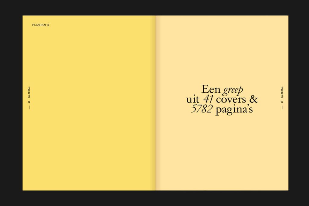 See All This (#19) met zestien iconische tentoonstellingen uit het verleden, waaronder de Wereldtentoonstelling, Lina Bo Bardi, Yves Klein en Annie Leibovitz, een interview met Boijmans Van Beuningen-directeur Sjarel Ex over de toekomst van het museum en het eigenzinnige droomhuis van Konstantin Melnikov.