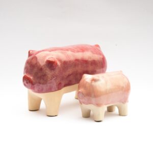 Met haar project wil Nash de mythe doorprikken. Analogisch denkend ontwierp ze bijzondere handgemaakte varkentjes, Pigcoins – echte hebbedingen die door hun sterke aanwezigheid en karakter een bestseller geworden zijn: ze heeft er honderden van verkocht. Daardoor is ze dus gelukkig en houdt ze haar economie draaiende. Inderdaad, hoe een varken een symbool vangt van door een economie van esthetische en educatieve waarden.