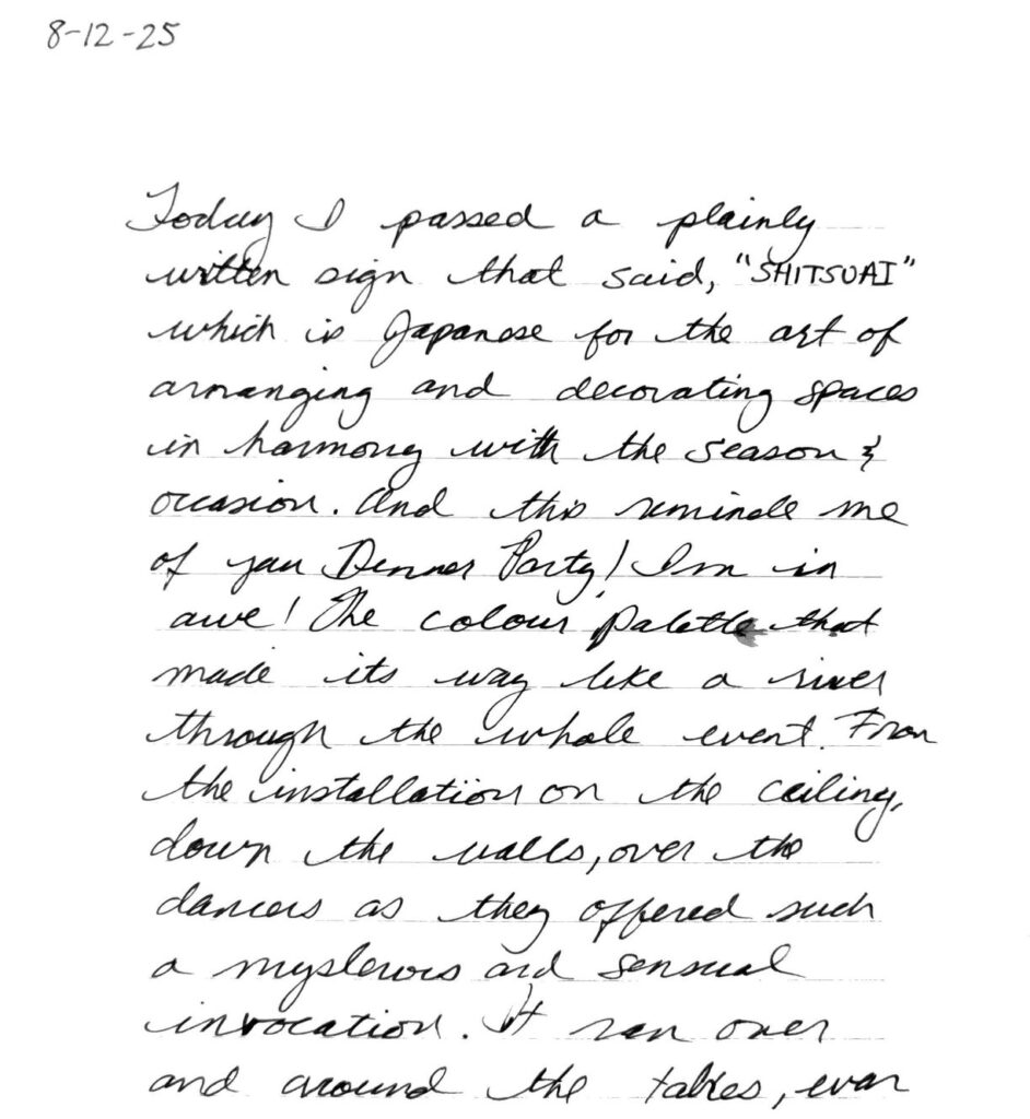 - Eva Bartels for transforming the linen tablecloth into a meters-long artwork