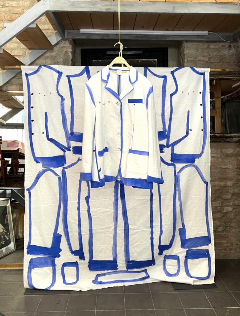 'Do It Almost Yourself' is Colomba’s proposal to the amateur: to sew a garment by perfectly following the deliberately imperfect contour, allowing variations and interpretations to emerge and enabling the design to be tailored to fit. Each work thus becomes different and uniquely itself and every maker influences the outcome.