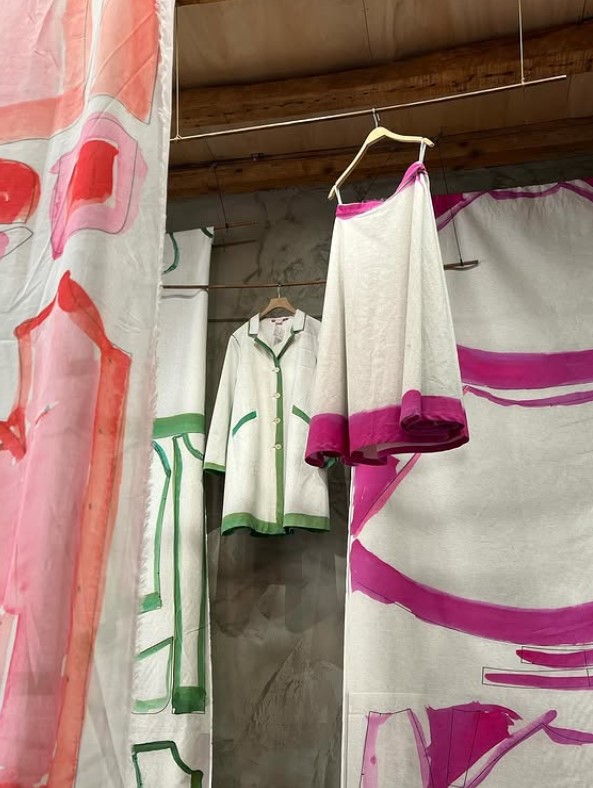 As an acclaimed textile, costume, and interior designer, Colomba Leddi is fascinated by the history of clothing patterns as a way of mapping the body through the transition from the 2nd to the 3rd dimension. She discovers the allure of watercolor painting and understands that her drawings can challenge people to create garments together with her.