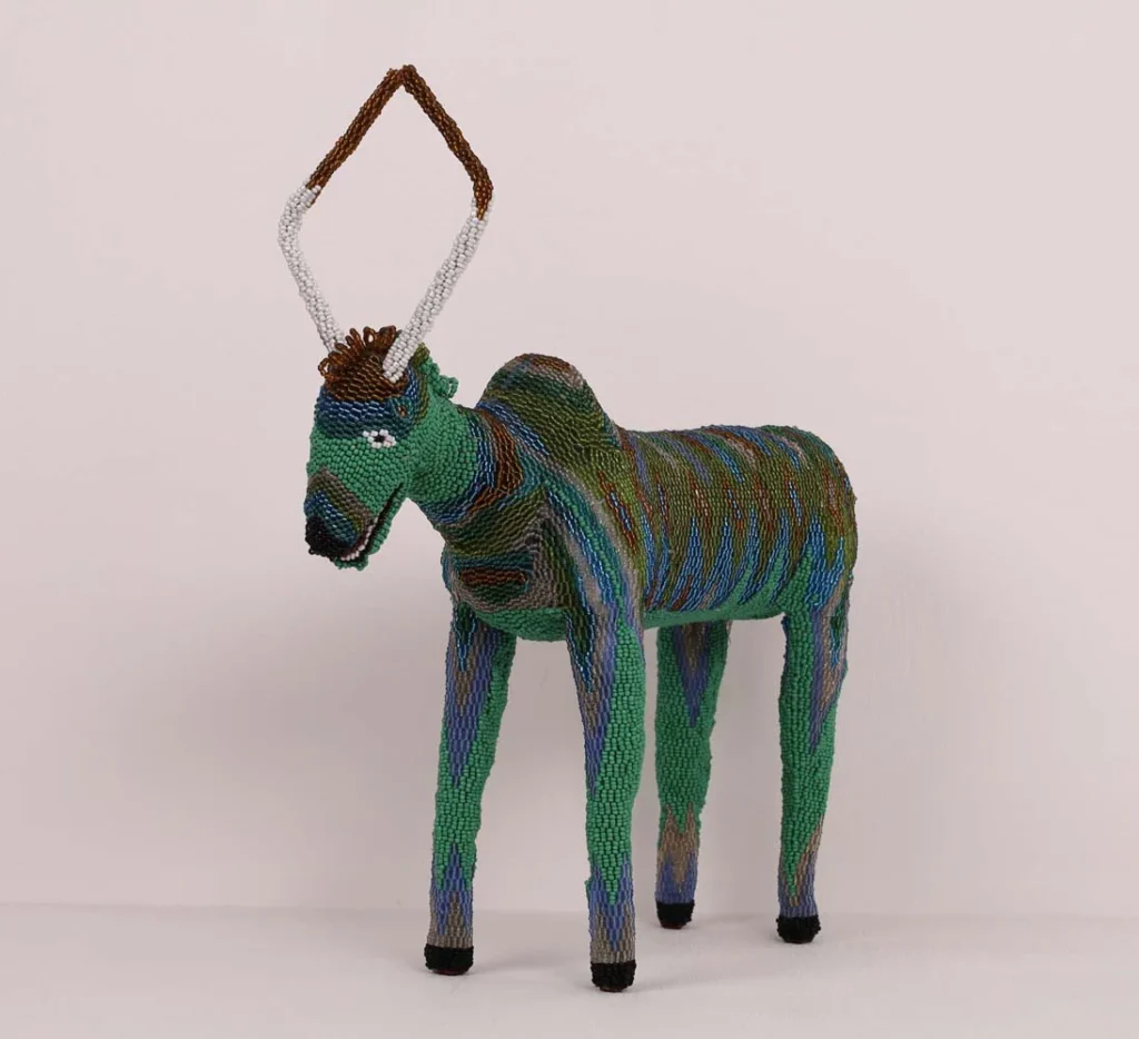 Collectible - Deze 'bokkie' van Zisiwe Lemkwana is gemaakt van kralen in een palet van verschillende kleuren.