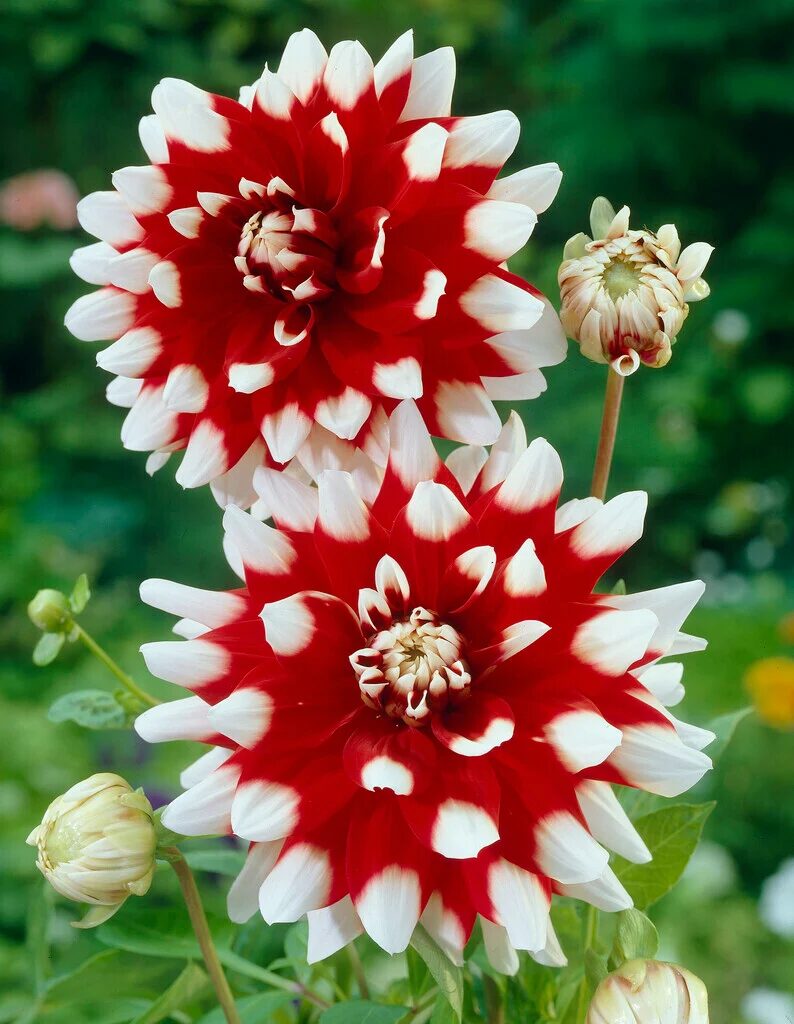 - dahlia ‘Duet’ (grote rood-wit); en