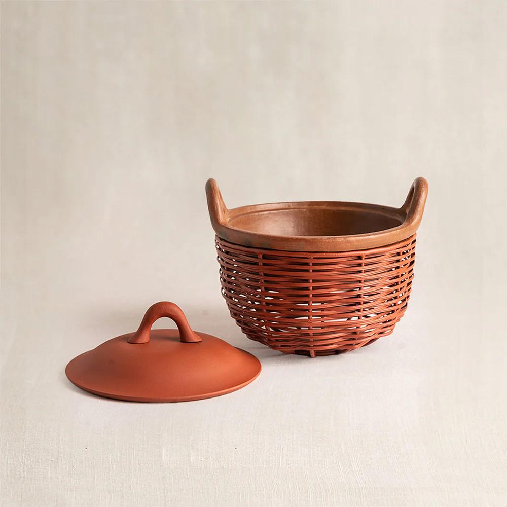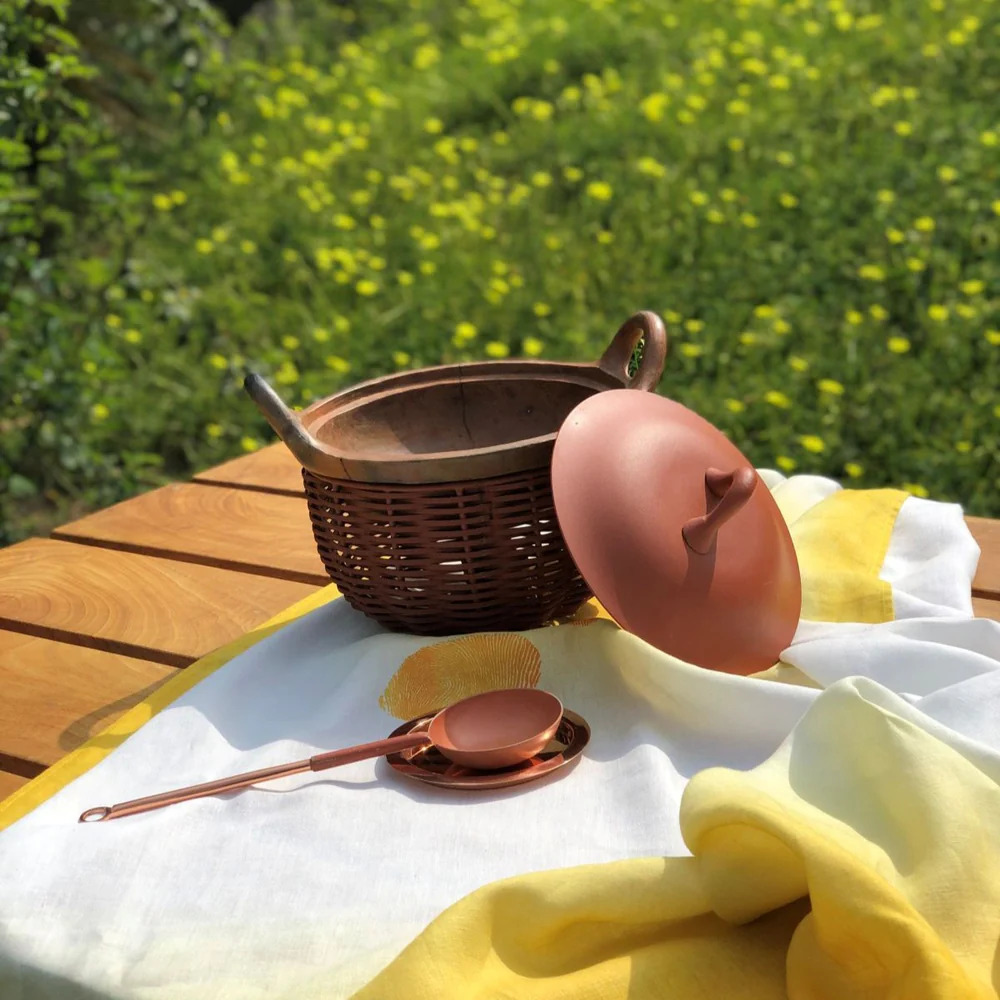 Longpi is het beroemde zwarte aardewerk van Manipur, oorspronkelijk gemaakt voor rituelen, ceremonies en als alledaagse voorwerpen. De komvorm volgt de 'Kadai', een koekenpan met twee handvatten die wordt gebruikt in de Indiase keuken, met een metalen deksel bekroond door een sierlijk handvat dat het Longpi-ambacht nabootst.